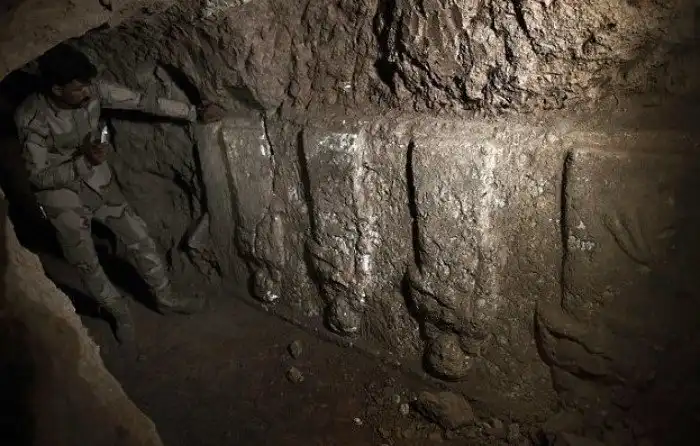 Непосредственно в туннелях ИГИЛ археологи обнаружили две белые мраморные скульптуры крылатых быков, символов Ассирии, и барельеф полубогини, рассеивающей "воду жизни". Ученые полагают: ИГИЛовские мародеры не вынесли их в качестве трофеев лишь потому, что они были слишком массивны и могли в любой момент расколоться.