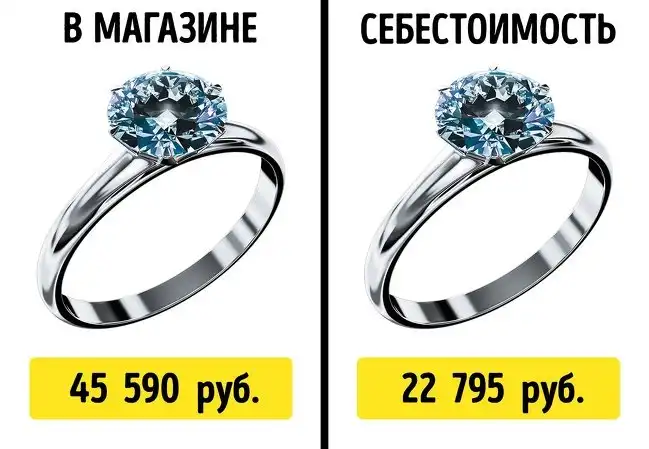 Международная корпорация De Beers, которая занимается добычей, обработкой и продажей природных алмазов, в 1947 году провела успешную рекламную кампанию, результаты которой мы наблюдаем до сих пор. Именно она убедила людей, что кольцо с бриллиантом — традиционный и незаменимый атрибут помолвки. В результате вырос и спрос, и цены на бриллианты. Сегодня наценка составляет около 100 %.