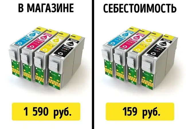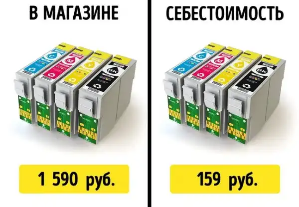 Невысокую прибыль от продаж недорогих принтеров производители компенсируют наценкой на картриджи, поднимая ее до 10 раз, и производители оправдывают такой шаг затратами на исследования и разработки. По некоторым подсчетам, чернила для принтеров обходятся дороже, чем бензин и дорогой алкоголь.