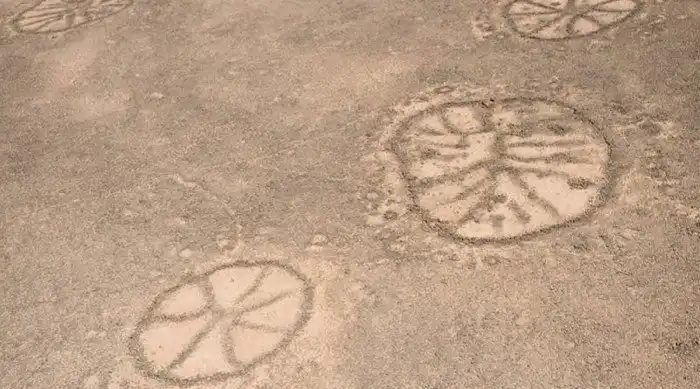 Не так давно – во время Первой мировой войны – летчики британских ВВС обнаружили странные рисунки на земле на территории Аравийского полуострова. Они были похожи на гигантские велосипедные колеса. Ученые начали исследование и выяснили, что созданы они были в 6500 году до нашей эры. Это очень странно, потому что с земли геоглифы не видны, а смотреть на них можно только с высоты птичьего полета.