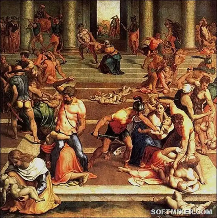 Собственно, в вину ему вменяют прежде всего избиение младенцев города Вифлеема и округи. Согласно Евангелию от Матфея, Ирод, узнав о том, что там народился загадочный царь иудейский, то есть Иисус, испугался узурпации своей власти и отдал приказ уничтожить всех тамошних мальчиков до 2 лет, надеясь, что под нож попадёт и Христос.