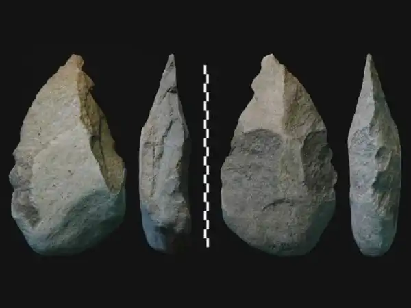 Олдувайские (слева) и ашельские каменные топоры, найденные в Кокиселее (оз. Туркан), Танзания