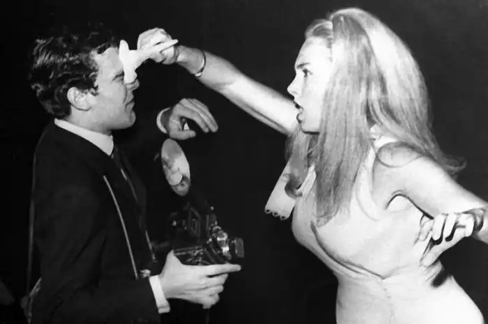 И в завершение о еще одном использовании мороженого без слов расскажет эта фотография. 1962 год, Канны. Подруга Федерико Феллини, Анук Эме, угощает мороженым папарацци.