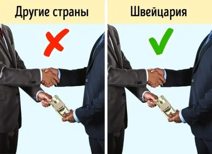 В 2017 году Швейцария заняла 3-е место в рейтинге стран, активно участвующих во взяточничестве. Что любопытно, так это то, что Швейцария решила сделать подкуп «законным», в форме оплаты за конкретную услугу. Они думали, что это будет более эффективно, чем борьба с взяточничеством.