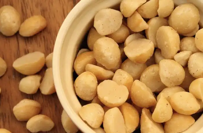 Орех родом из Австралии считается одним из самых калорийных. Макадамия является источником витаминов группы В, Е, РР, кальция, селена, меди, фосфора, цинка, калия, натрия, органических кислот и жиров. Его употребление в небольших количествах — отличная профилактика сердечно-сосудистых заболеваний и эффективное народное средство при болезнях костей. Кроме того, орех обладает антиоксидантными и омолаживающими свойствами.