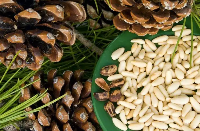 Семена кедровой сибирской сосны содержат девятнадцать аминокислот, витамины А, В, С, D, Е, Р, важные макро- и микроэлементы. Концентрация их настолько высока, что всего 100 гр. кедровых семян могут обеспечить суточную потребность в марганце, меди, цинке, калии, кальции, кобальте и многих других элементах. На организм кедровые орехи оказывают общеукрепляющее действие, нормализуют деятельность нервной системы, снижают риск сердечно-сосудистых заболеваний. В скорлупе орехов содержатся дубильные вещества, оказывающие выраженное противовоспалительное и обезболивающее действие.