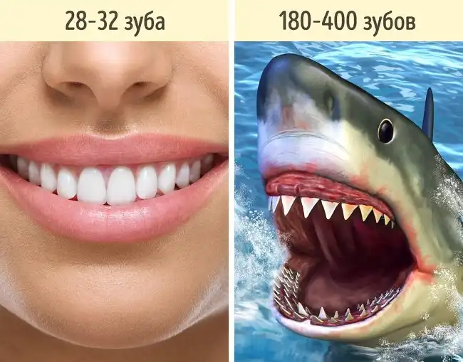 Как было бы лучше? В зависимости от вида у акулы в пасти могут находиться от 4 до 28 рядов зубов, и потеря нескольких из них совсем не критична. Но, чтобы разместить больше зубов, рот человека тоже должен быть больше.