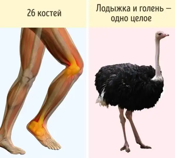 Как было бы лучше? Более удобно и «эффективно» устроена нога у страуса: лодыжки и кости голени у него соединены, пальца только два, и те тоже участвуют в процессе передвижения. Также можно повернуть назад коленную чашечку, ведь она очень часто страдает при падениях или ударах.