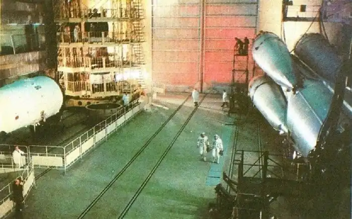 Монтажно-испытательный корпус являлся основным сооружением технической позиции на второй площадке. Нам предстояло проводить в нем все операции по подготовке ракет до их вывоза на стартовую позицию. В большой высотный зал МИКа свободно вкатывался тепловоз, толкающий впереди вагоны с блоками ракеты. Здесь, в зале, проводилась разгрузка, размещение их на время испытаний на транспортных тележках, и здесь же предстояло впоследствии проводить сборку пакетов из раздельно испытанных блоков».