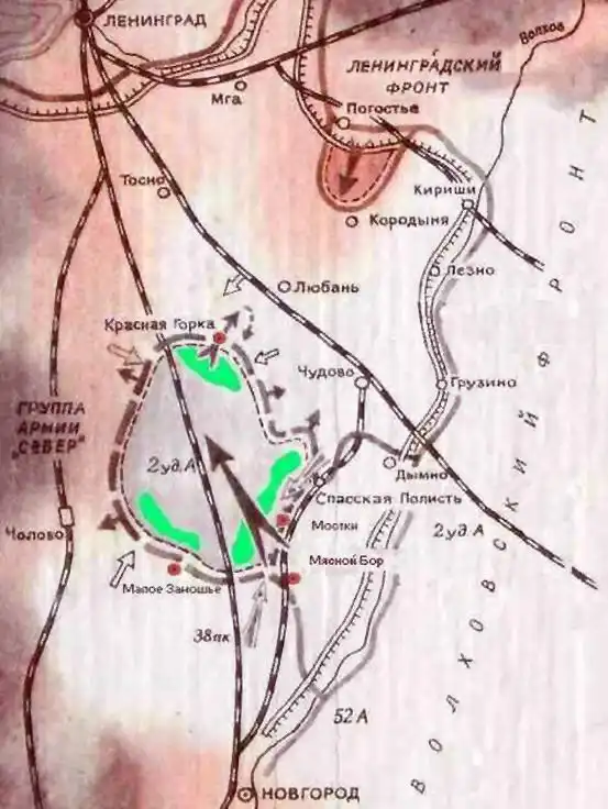 Карта действий 2-й ударной армии СССР в районе Долины смерти