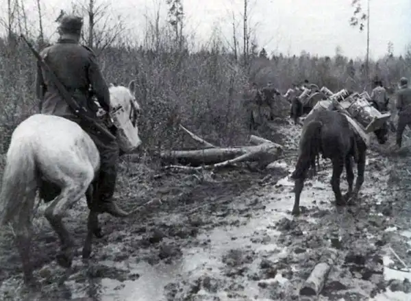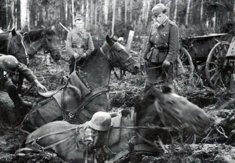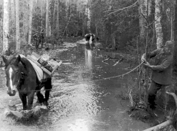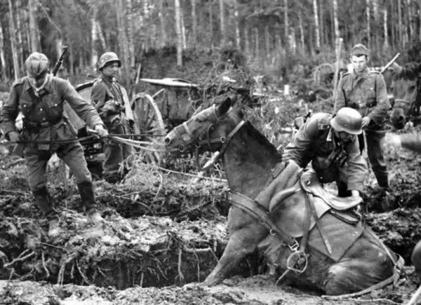 Германская армия в Новгородской области - лошади увязли по брюхо