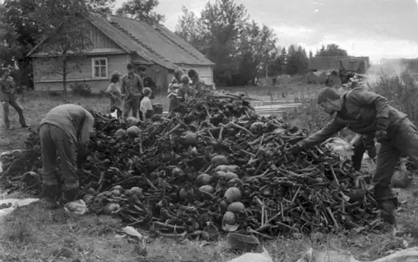Этой лесной болотистой местности, окружающей деревеньку с довольно странным названием, принадлежит отдельная страница в истории Второй мировой войны. Она является самым большим в мире местом, которое полностью покрыто останками погибших солдат Советской армии.