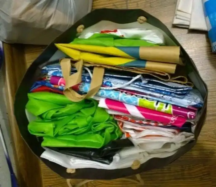 Этот пережиток прошлого почти невозможно искоренить! С другой стороны - куда класть пакеты, размножающиеся в геометрической прогрессии? В СССР пакеты были дефицитом, поэтому их стирали, сушили и хранили, а те, что с ручками, да еще с красивым принтом - и вовсе берегли как зеницу ока.