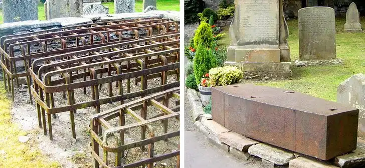 Может показаться, что железные гробы призваны удержать в могилах покойников, но причина их распространения в Великобритании начала XIX века вовсе не в суеверности простых граждан. Мортсейфы стали изготавливать, чтобы защитить усопших от похитителей трупов, которые незаконно эксгумировали тела и продавали их в медицинские учреждения для проведения вскрытий и лекций по анатомии.