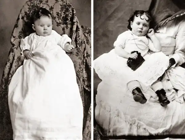 «Спрятанная мать» — целый жанр британской фотографии, существовавший до 1920-х годов. В то время фотографический процесс мог длиться несколько минут, и маленькие дети часто начинали плакать и елозить в кадре. Тогда детей стали усаживать на колени к матери, но так как фотография должна была запечатлеть только ребенка, на мать набрасывали ткань, «превращая» ее в подобие кресла. Иногда такой способ использовали и при создании посмертных фотографий.