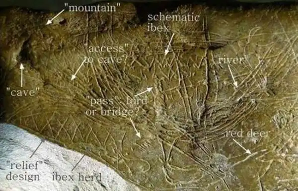 Людям пришлось изобретать не только способы отслеживания лунных циклов, но и понять, как ориентироваться в пространстве. Археологи все еще обсуждают значение раннего наскального искусства, но некоторые из самых старых примеров возможных доисторических карт происходят из пещеры Абаунц в Испании. Считается, что каменные таблички возрастом 14 000 лет изображают горы, реки и пруды, пересекающиеся маршруты и охотничьи тропы. Также картоподобные изображения гор, рек, долин и маршрутов, найденные в окрестностях города Павлова (Чехия) были датированы приблизительно 25 тысячелетием до н. э.
