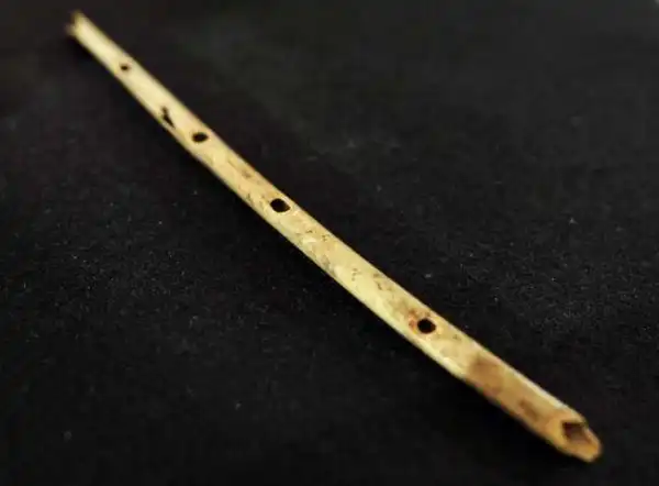 Современные ученые предполагают, что музыка существует уже около 50 000 лет. Самые древние экземпляры музыкального инструмента были найдены при раскопках в Германии, в пещере Холе-Фельс. Они лежали рядом со скульптурами, которые относят к 35 000-40 000 лет до нашей эры. Это были флейты, сделанные из крыла стервятника и бивней мамонта. Их толщина не превышает 8 мм, а длина составляет 21,8 см. В корпусе пробито 5 отверстий, которые при игре закрывались пальцами.