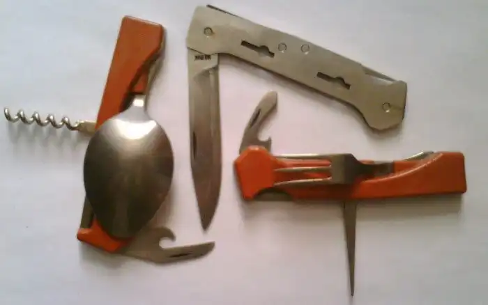 Нож, вилка, ложка и кружка – с тех времен для туриста в этом наборе ничего не изменилось. Стоит отметить, что хороших туристических ножей в обороте ходило не так уж много, и берегли их как зеницу ока.