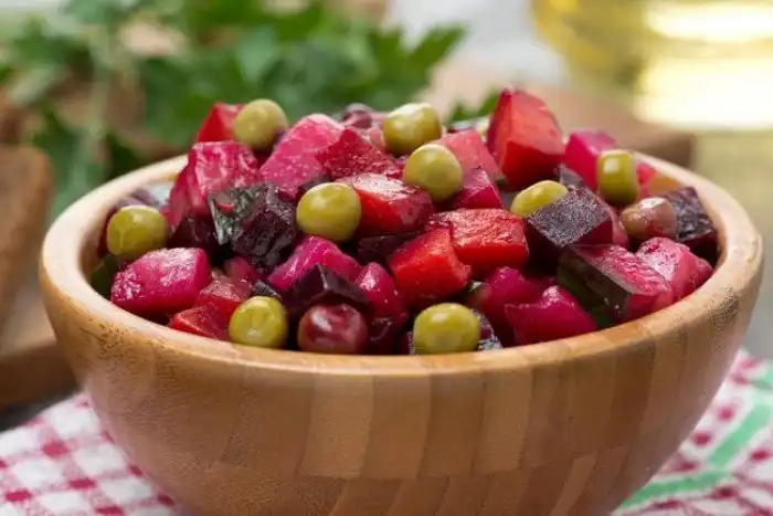 Маринованные и соленные овощи – традиционная закуска под водку. Если соленые овощи поддерживают водно-солевой баланс в организме, то маринованные дают лишнюю нагрузку на печень и почки. В приготовлении маринованных продуктов используют уксусную кислоту. А уксус и острые специи создают гремучую смесь, тяжелую для организма, и без того отягощенного алкоголем. Можно закусить соленным огурчиком или квашенной капустой, а лучшей закуской будет винегрет.