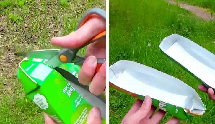 Если на пикнике не хватает посуды, воспользуйтесь пустой пластиковой бутылкой или тетрапаком от сока, разрезав упаковку вдоль на 2 части.