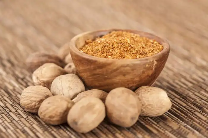 Мускатный орех — частый гость многих блюд. Специя с тонким и пряным сладковатым привкусом и запахом отлично дополняет мясо, рыбу, первые блюда, десерты, салаты, горячие напитки в виде чая, глинтвейна и кофе, а также множество других кулинарных рецептов. Однако в больших количествах мускатный орех способен причинить значительный вред организму. В его составе есть природное соединение, которое называется миристицин. Это вещество обладает галлюциногенным эффектом, весьма подобным влиянию наркотика ЛСД. Миристицин в чистом виде весьма токсичен. Употребив 5 граммов любимой специи, можно заработать себе малоприятный визит в больницу.