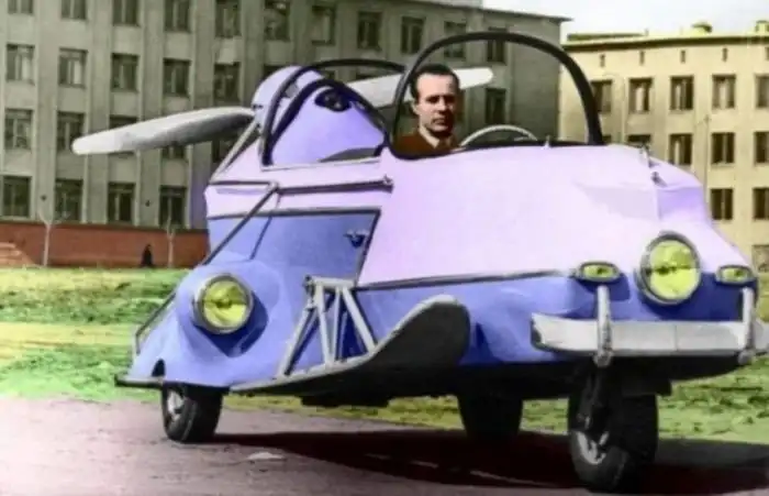 Авто-аэромобиль создан советскими конструкторами в 1966 году. В движение транспортное средство приводилось огромным пропеллером в задней части. На шоссе машина без проблем разгонялась до 120 км/ч. Будучи поставленной на лыжи на снегу достигала скорости в 80 км/ч. В режиме амфибии достигала скорости в 50 км/ч.