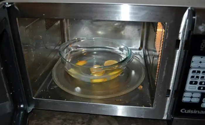 Поместите миску с водой, лимонным соком и кусочками лимона в микроволновую печь. Выставите таймер на 3 минуты и включите микроволновку. По истечении времени достаньте миску — теперь остатки вашего повседневного меню легко отойдут после пары взмахов мягкой тряпкой. После такой очистки микроволновка приобретет освежающий цитрусовый запах.