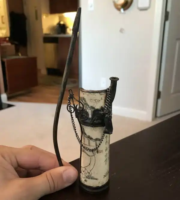 Это японская традиционная курительная трубка кисэру для курения мелко нарезанного табака.
