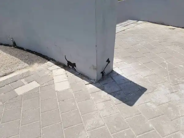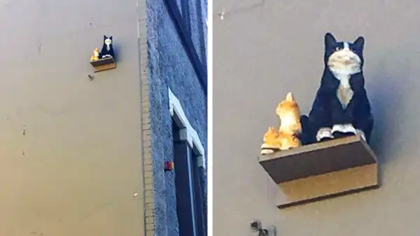 «На стене здания в Денвере нашел эти фигурки кошки и котят»