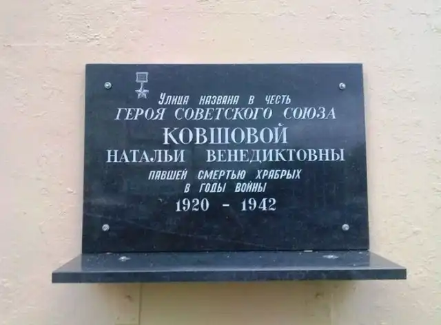 Наталья Венедиктовна Ковшова (26.11.1920 — 14.08.1942) родилась в Уфе. В 1940 году окончила московскую школу № 281 в Уланском переулке (ныне № 1284). Работала в Москве, готовилась поступать в МАИ.