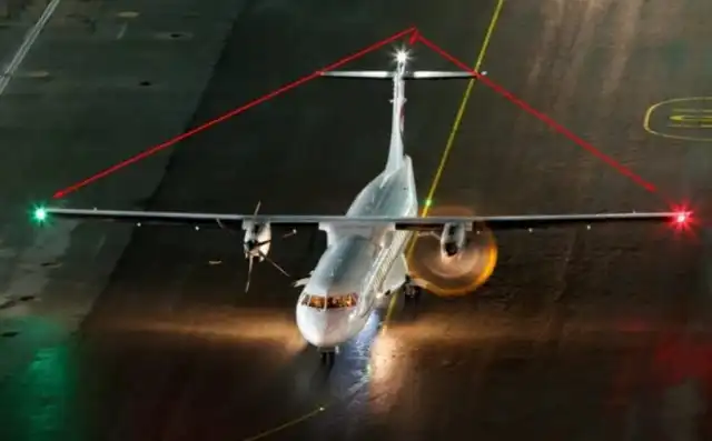 А эти огни помогают нам понять направление полета самолета.