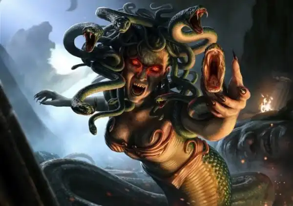 Горгоны в греческой мифологии три сестры — Стено, Евриала и Медуза. Это коварные чудовища с клыками и с живыми змеями вместо волос. Способны взглядом превращать всё живое в камень. Самая известная — Медуза, является единственной смертной из сестёр.