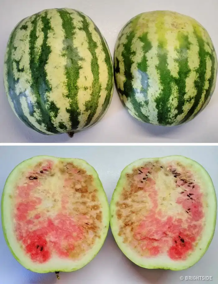 Полый центр указывает на то, что плод слишком зрелый или содержит гормоны роста. Перезрелый арбуз может быть немного горьким, в то время как арбуз с гормонами роста может вызвать отравление. Вот почему лучше не есть его, если вы видите плод в этом состоянии.