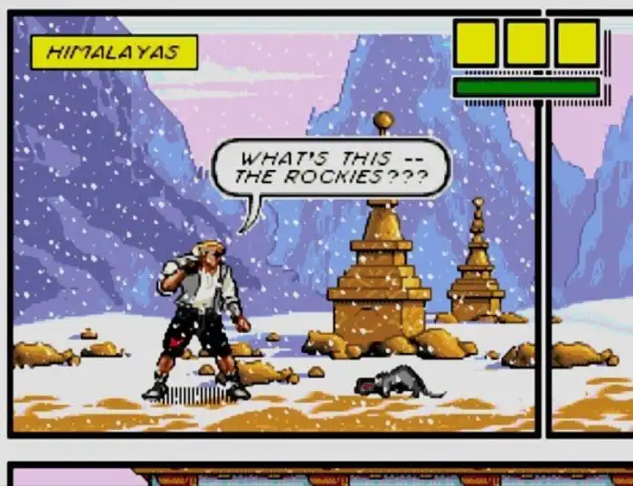 Проект Comix Zone – отличный пример того, что могут сделать фанаты, дорвавшись до работы мечты и получив возможность воплотить все свои творческие задумки. Авторы игры стилизовали все действо под комикс с его особыми установками и правилами. Каждый новый экран представлен отдельным кадром, на котором герой должен выполнить серию действий – уничтожить противников, передвинуть ящики, переключить рычаг и пр. Только после этого Тернер сможет перепрыгнуть на следующий кадр, используя белую рамку между картинками. Когда полоска из нескольких экранов-кадров заканчивается, герой спускается ниже, пока не доберется до конца страницы. На этом уровень заканчивается и начинается новый… снова с самого верхнего левого кадра.