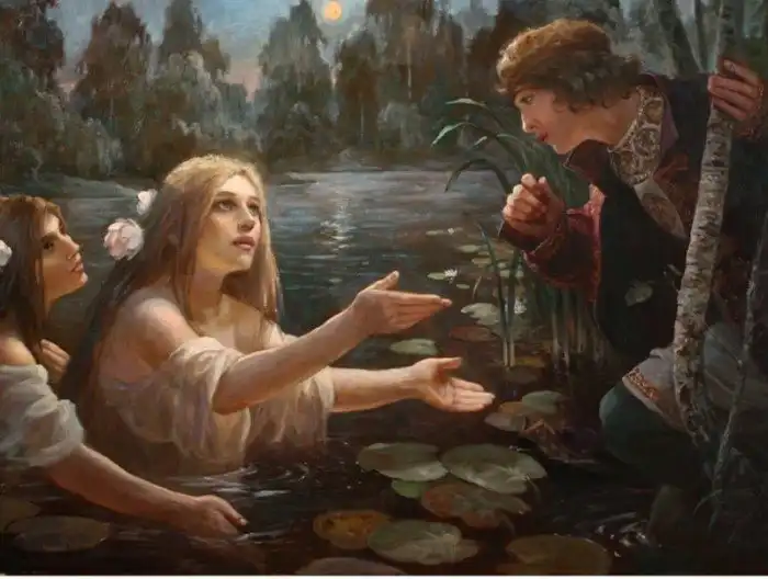 Если зеркала можно было не вешать в своем доме, то с водой дела обстояли иначе, ведь люди постоянно контактировали с ней. Поход за водой был связан с целым рядом суеверий, главным из которых был запрет подолгу смотреться в водную гладь реки или озера, ослушавшихся могли утащить на дно «водяницы», «лешачихи», «чертовки» - русалки. Считалось, что русалками становились после смерти молодые женщины, умершие насильственной смертью или наложившие на себя руки. Поэтому мало кто отваживался ходить по воду ночью, боясь попасть в сети к заложенным покойницам.