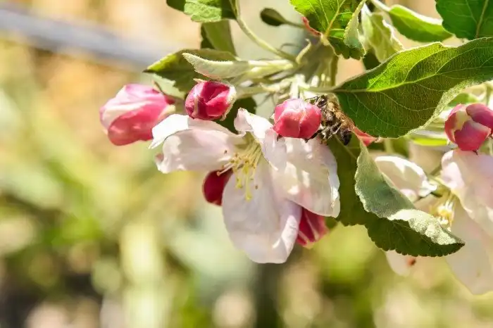 Ульи с пчелами для опыления так же устанавливаются в непосредственной близости к саду. Яблочный мёд – побочный продукт плодоводства.