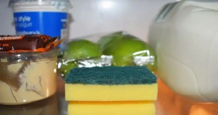 Часто бывает так, что в холодильнике испортился какой-либо продукт, но устранить неприятный запах не удается. Для этого необходимо увлажнить губку, осыпать содой и разместить ее в холодильнике. Только избегайте соприкасания с едой.