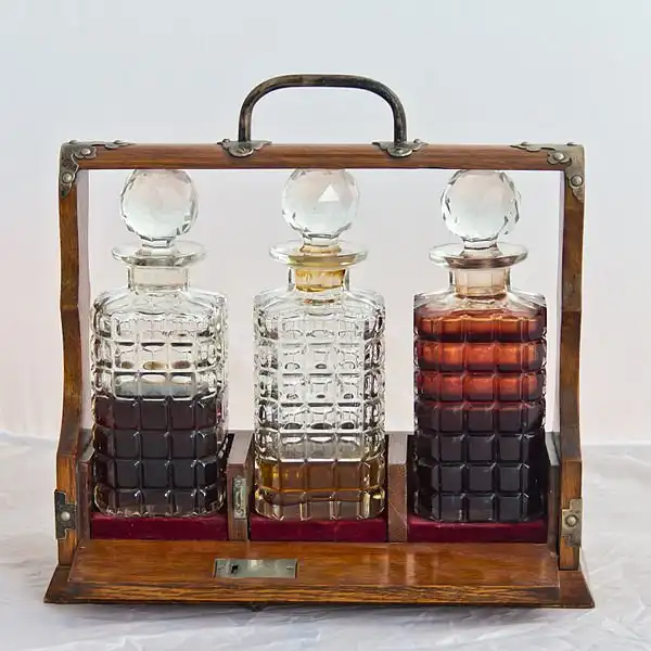 "Тантал" (tantalus) – специальная деревянная подставка для графинов с алкогольными напитками, например виски. Она запиралась на ключ, чтобы, не открыв замок, невозможно было вынуть графин.