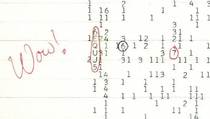 15 августа 1977 года д-р Джерри Р. Эман обнаружил сильный узкополосный радиосигнал во время работы над проектом SETI на радиотелескопе Большого уха Университета штата Огайо. Поразмыслив над тем, насколько близко он соответствует ожидаемой сигнатуре межзвездного сигнала, он окружил его на распечатке компьютера и написал комментарий рядом с ним. Хотя он длился целых 72 секунды, он не был обнаружен снова.