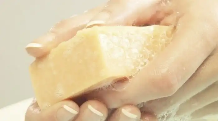 Растительное масло и животный жир – вот два основных компонента хозяйственного мыла. Изготавливают его преимущественно из натуральных ингредиентов, а потому не стоит удивляться тому, что хозяйственное мыло прекрасно справляется с раздражением на коже после бритья. Главное достоинство этого средства в том, что такое мыло полностью безопасно для человека.