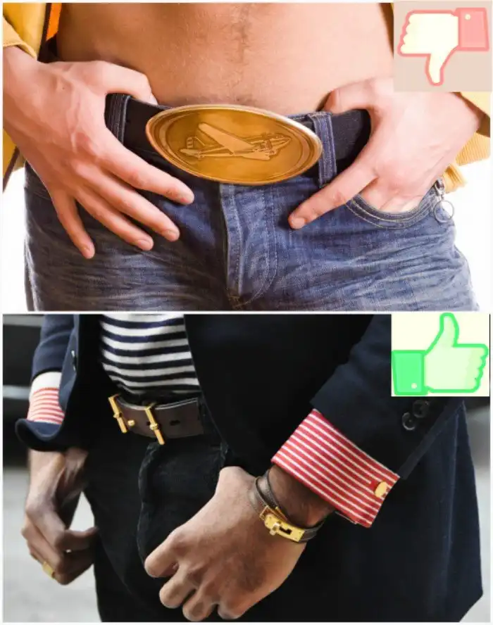 Некоторые мужчины всерьез считают, что ремень с крупной пряжкой поможет заявить о себе, заставит всех обратить внимание на свои выдающиеся достоинства. Одним словом такой ремень, выставленный на показ, свидетельствует о том, что перед вами альфа-самец, жиголо и самовлюбленный эгоист. Что касается серьезных самодостаточных мужчин – они выбирают классику. Кожаный ремень с классической пряжкой – универсальный аксессуар, который никогда не выйдет из моды.