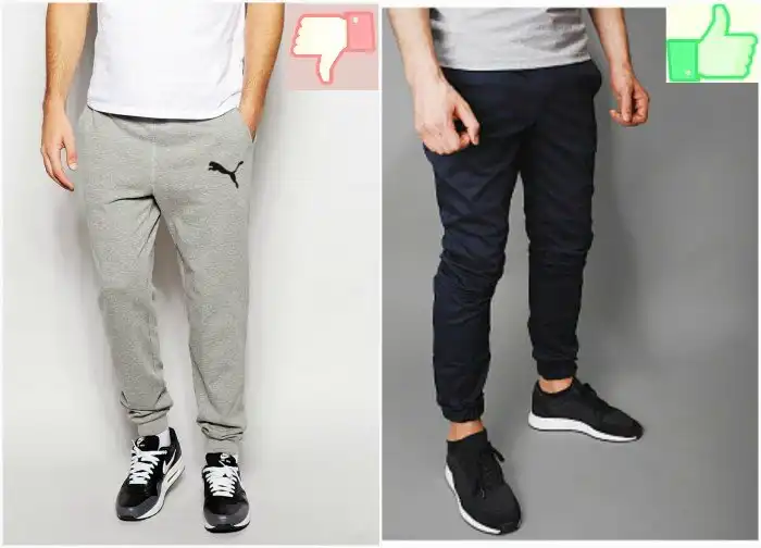Удобные трикотажные «спортивки» предназначены для тренировок в спортивном зале. Также их можно использовать в качестве домашней одежды. Однако такие брюки совсем не предназначены для повседневного ношения и выходов в свет. Мужчины же, которые не вылезают из «треников», просто невежды и лентяи. Если вам просто нравится спортивный стиль, подберите для себя брюки из денима или плащевки в стиле кэжуал.