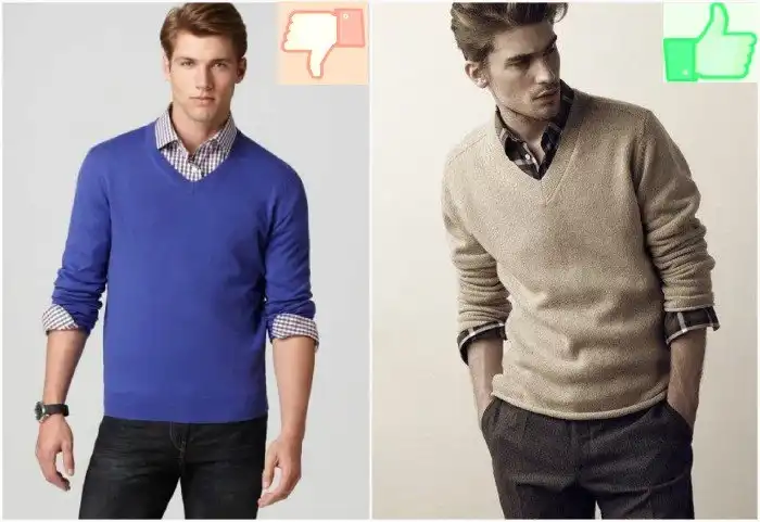 «Что плохого в сочетании джемпера и рубашки?» – спросите вы. Тут недоумение вполне обосновано, в таком комплекте действительно нет ничего плохого. Более того, это по-прежнему стильно и актуально. Но… джемпер обязательно должен быть плотным и свободным. В противном случае он подчеркнет все складки на рубашке и заставит выглядеть полнее, чем на самом деле.