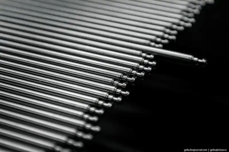Здесь трубки заполняют таблетками диоксида урана.