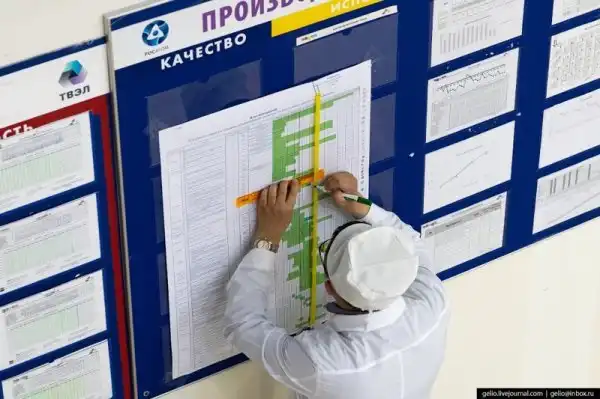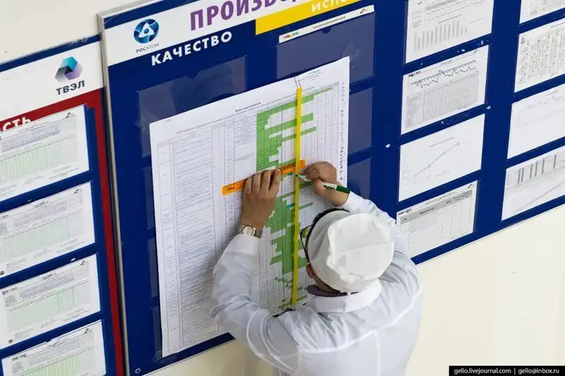 Последний этап — производственно-технический контроль. Таблетки ядерного керамического топлива осматривают, проверяют их плотность, содержание урана и примесей, а также термическую стабильность.