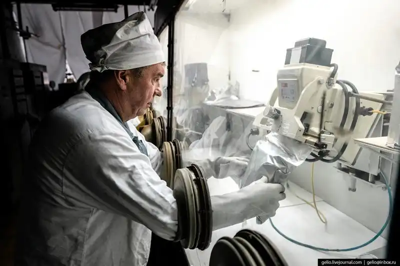 Все работы ведутся в герметичных боксах через специальные перчатки.