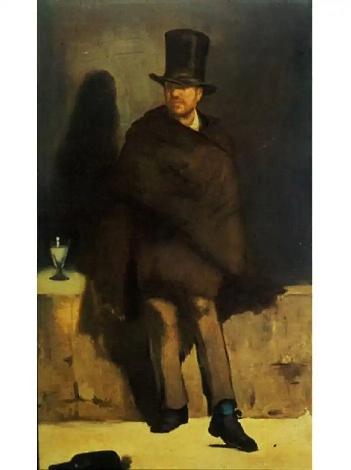 В 1859 году Эдуард Мане написал свое первое крупное полотно, которое назвал «Любитель абсента». С этой работы весьма неловко началась его карьера художника. Натурщиком выступил его знакомый старьевщик и алкоголик, которого нередко можно было встретить в районе Лувра. Художник разглядел в этом человеке какое-то странное достоинство, даже аристократизм. Закончив работу над картиной, Мане показал ее своему учителю, который отреагировал резко негативно: «Любитель абсента! Зачем рисовать такие мерзости? Мой бедный друг, это вы — любитель абсента. Это вы утратили нравственность». В дальнейшем картина продолжила производить неприятное впечатление почти на всех, кто ее видел.