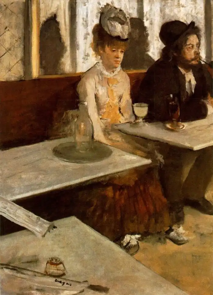 Известную картину Эдгара Дега «Абсент», сначала называвшуюся «В кафе» (1876), публика приняла еще хуже, чем полотно Мане. «Человек, которому дороги достоинство и красота, никогда не назовет «Абсент» произведением искусства», — писал критик. Кто-то даже предположил, что на этой картине изображен поэт Поль Верлен, который был известен тем, что вел ужасную жизнь, насквозь пропитанную абсентом.