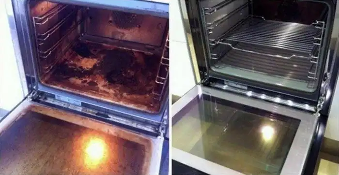 1. Сделайте пасту из воды и пищевой соды.2. Помажьте ею внутри духовки и оставьте на ночь.3. Используйте влажную губку, чтобы стереть соду.4. Распылите немного белого уксуса и удалите его через пару минут.5. Включите духовку на малую мощность минут на 20, чтобы она высохла.