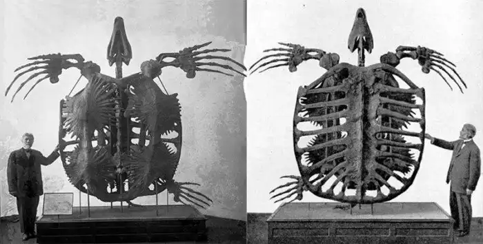 Наиболее впечатляющей черепахой всех времён, безусловно, является — морской гигант мелового периода. Его панцирь был мягким, как у современных кожистых черепах, но размер и масса с лихвой окупали недостаток защиты. Архелон достигал пяти метров в длину и весил более двух тонн. Существуй он в наше время, ему не составило бы труда перекусить взрослого человека пополам.